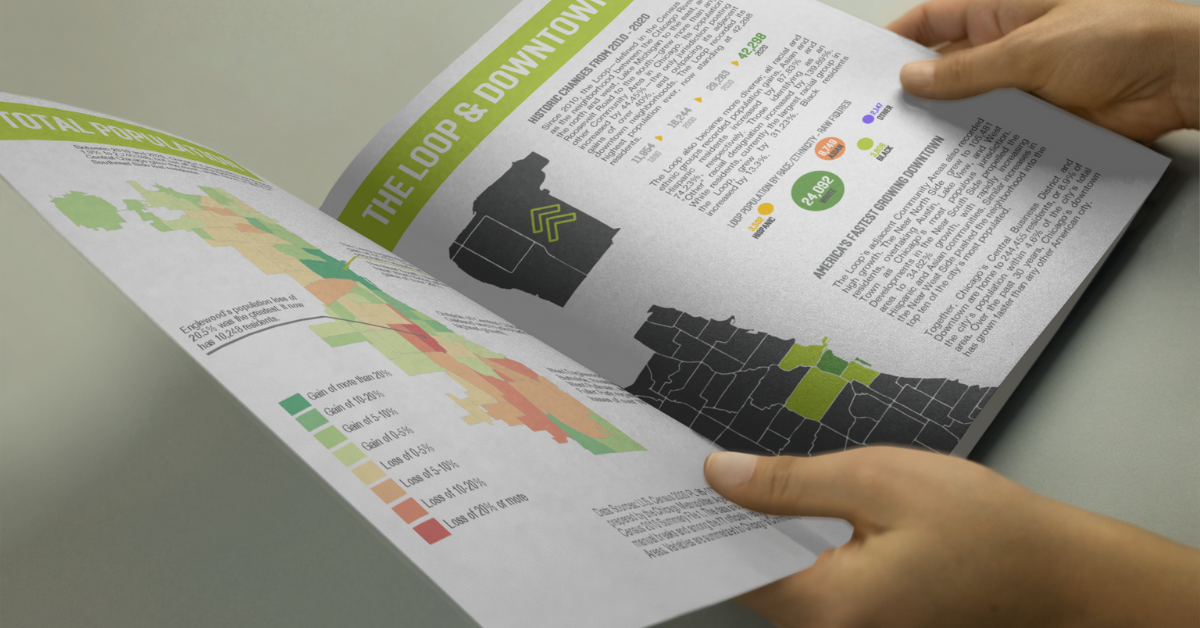 The collection of comparison data with the 2000 and 2010 censuses was necessary to build a marketing strategy behind Downtown Chicago’s vitality. From it, the narrative behind Chicago having the fastest-growing downtown of any major U.S. city was confirmed, and the report affirmed planning efforts for central social districts.